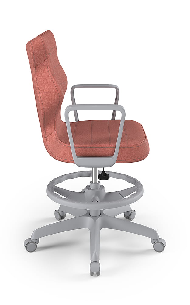 Krzesło do biurka dla dziewczynki dopasowane do wzrostu 159-188 cm, model Norm z podnóżkiem kolor różowy obrotowe